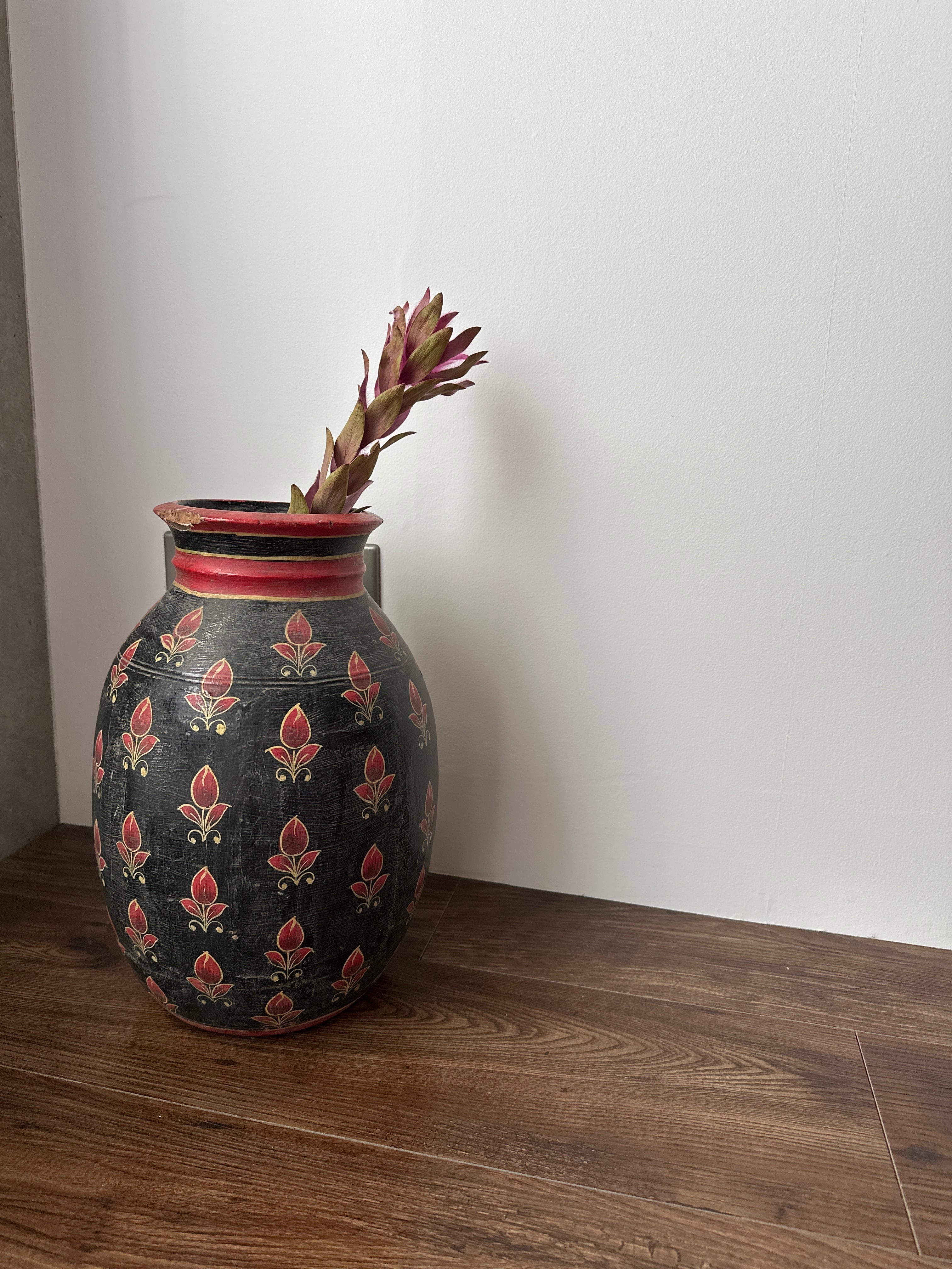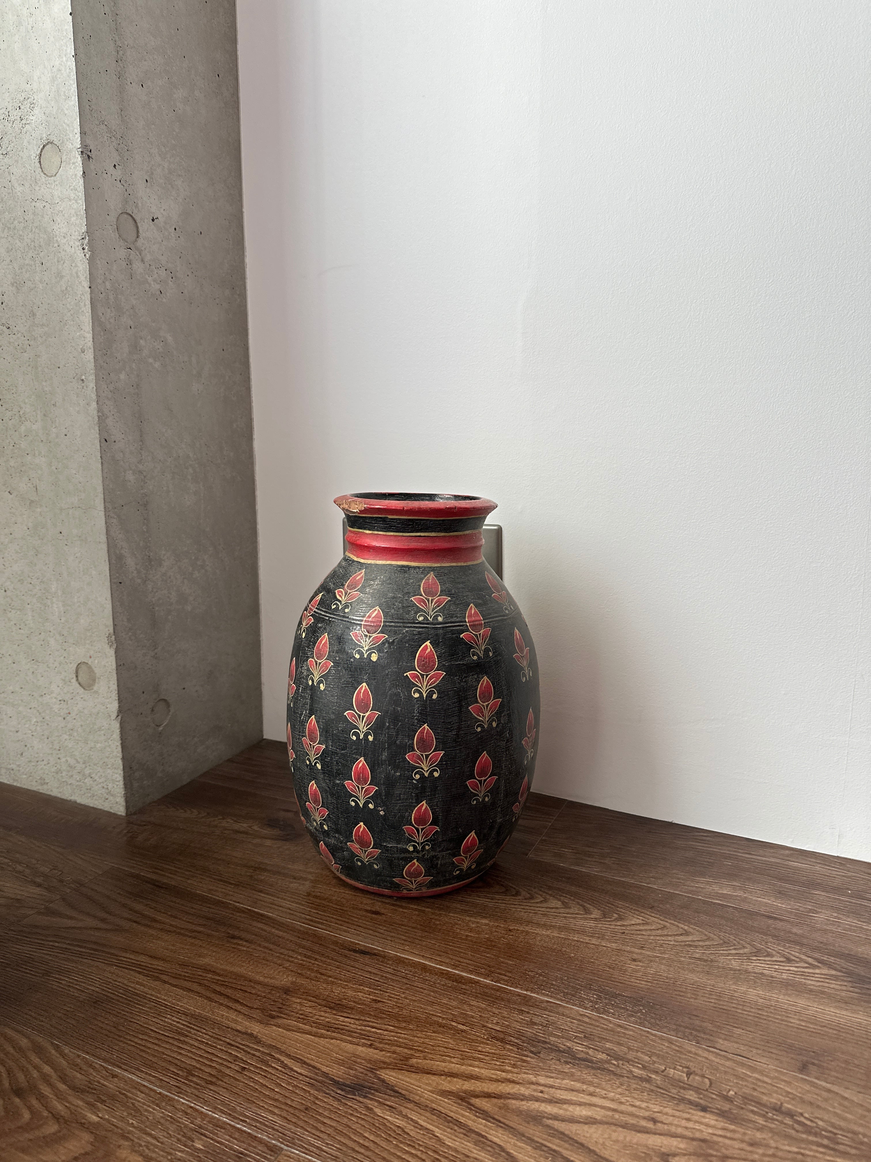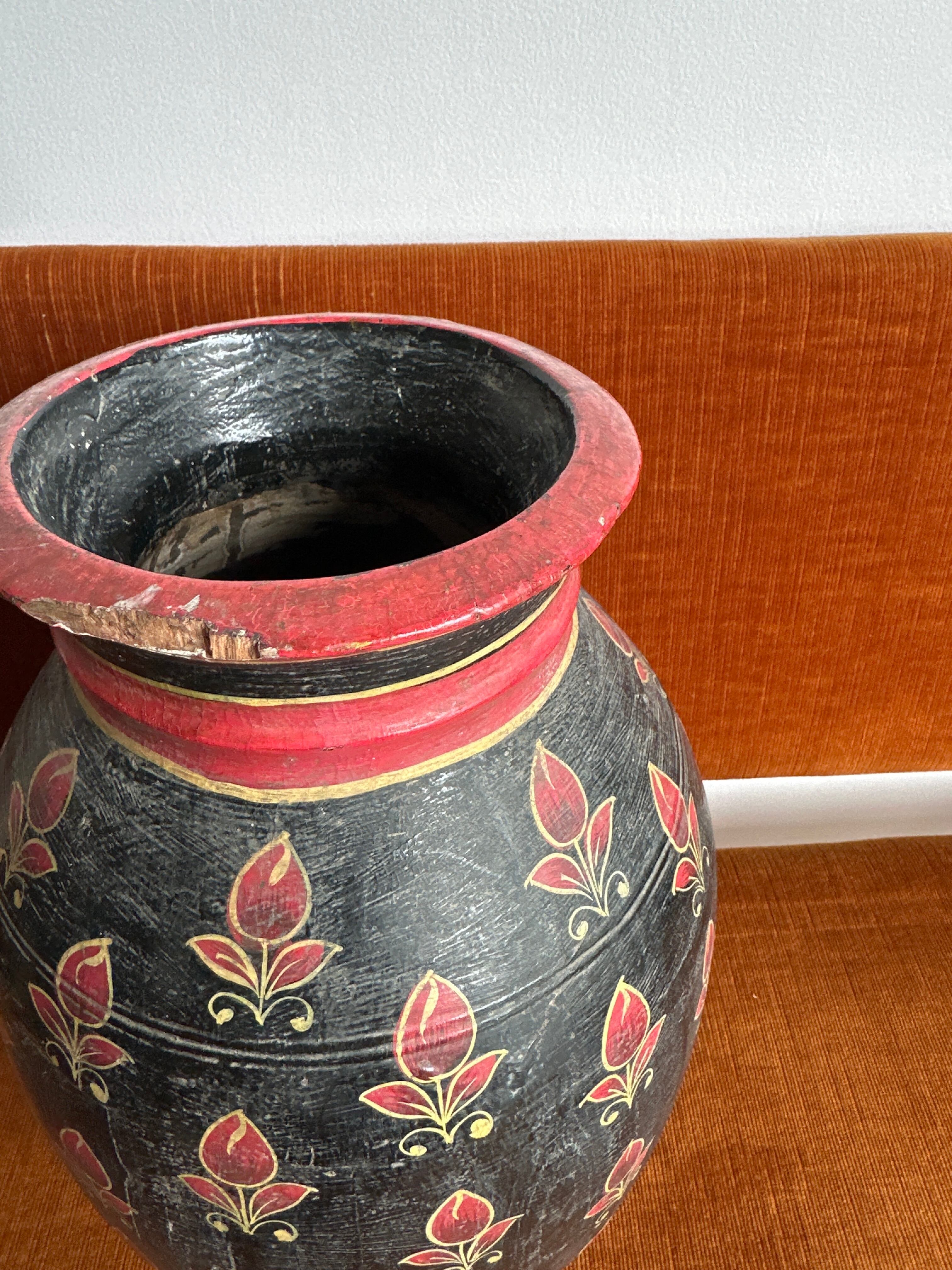 Old India 木製のフラワーベース 壺