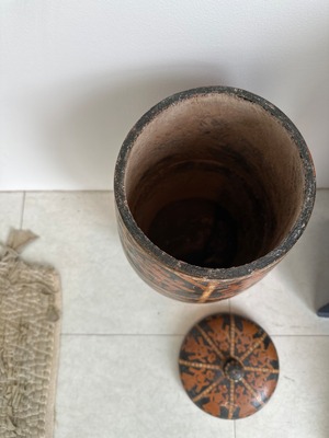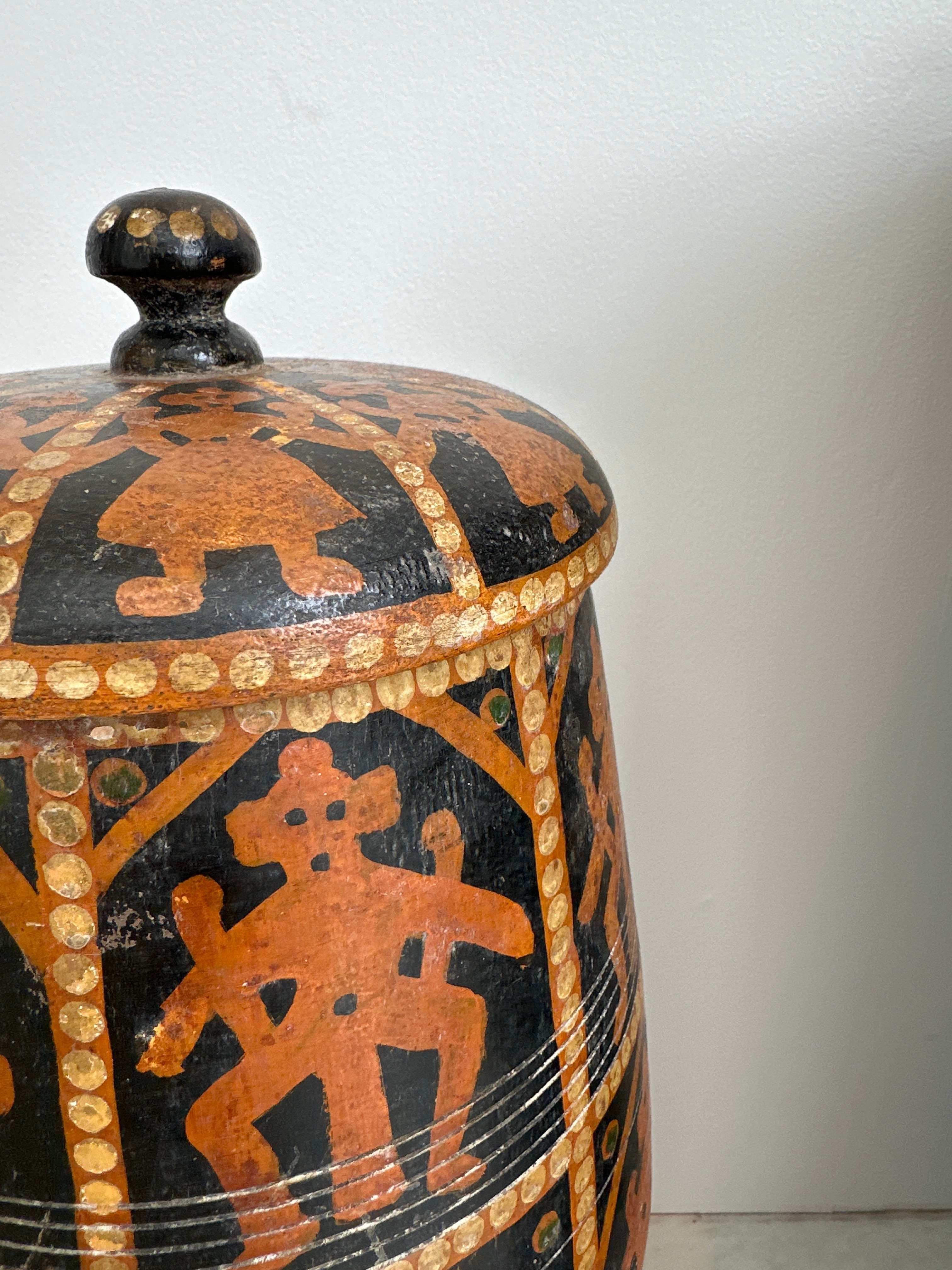 Black & Orangeな色合いの手描きな作りがインドならではの歴史を感じます。