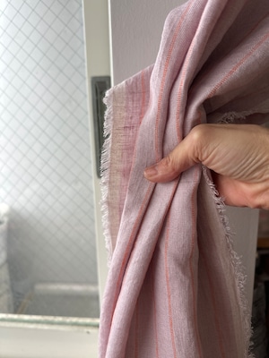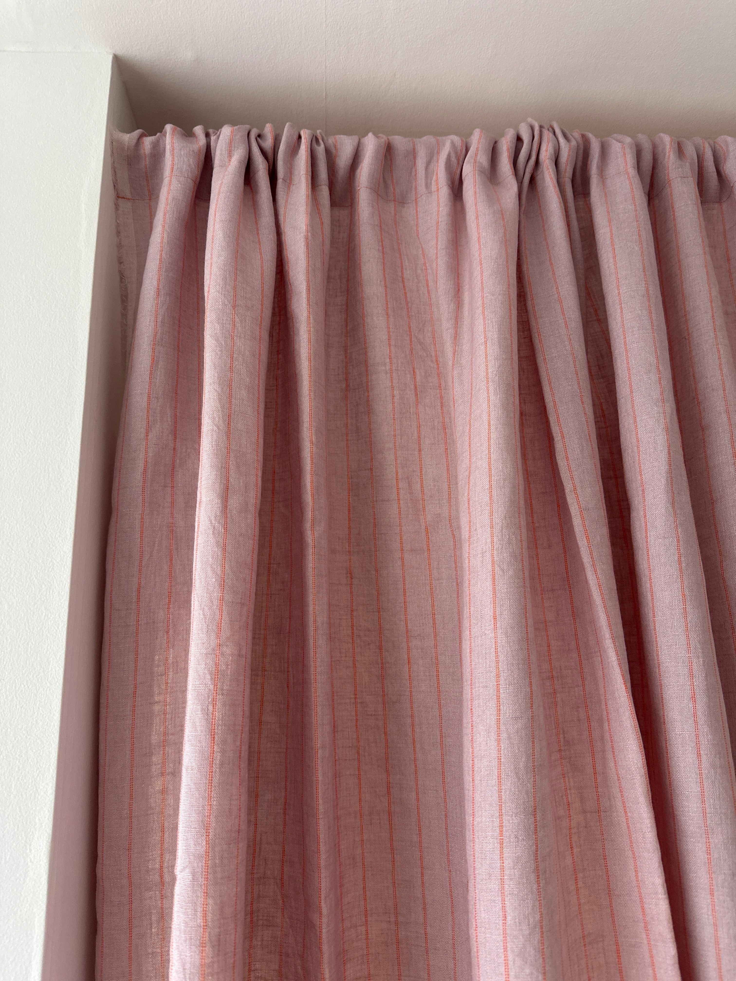 リトアニアリネン pink & orange ストライプ柄カーテン