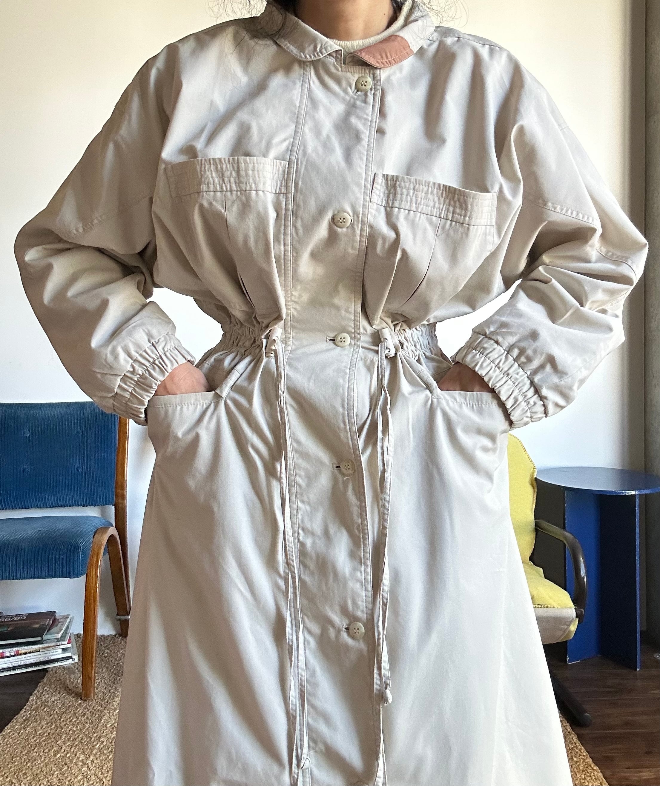 Vintage beige window long jacket coat