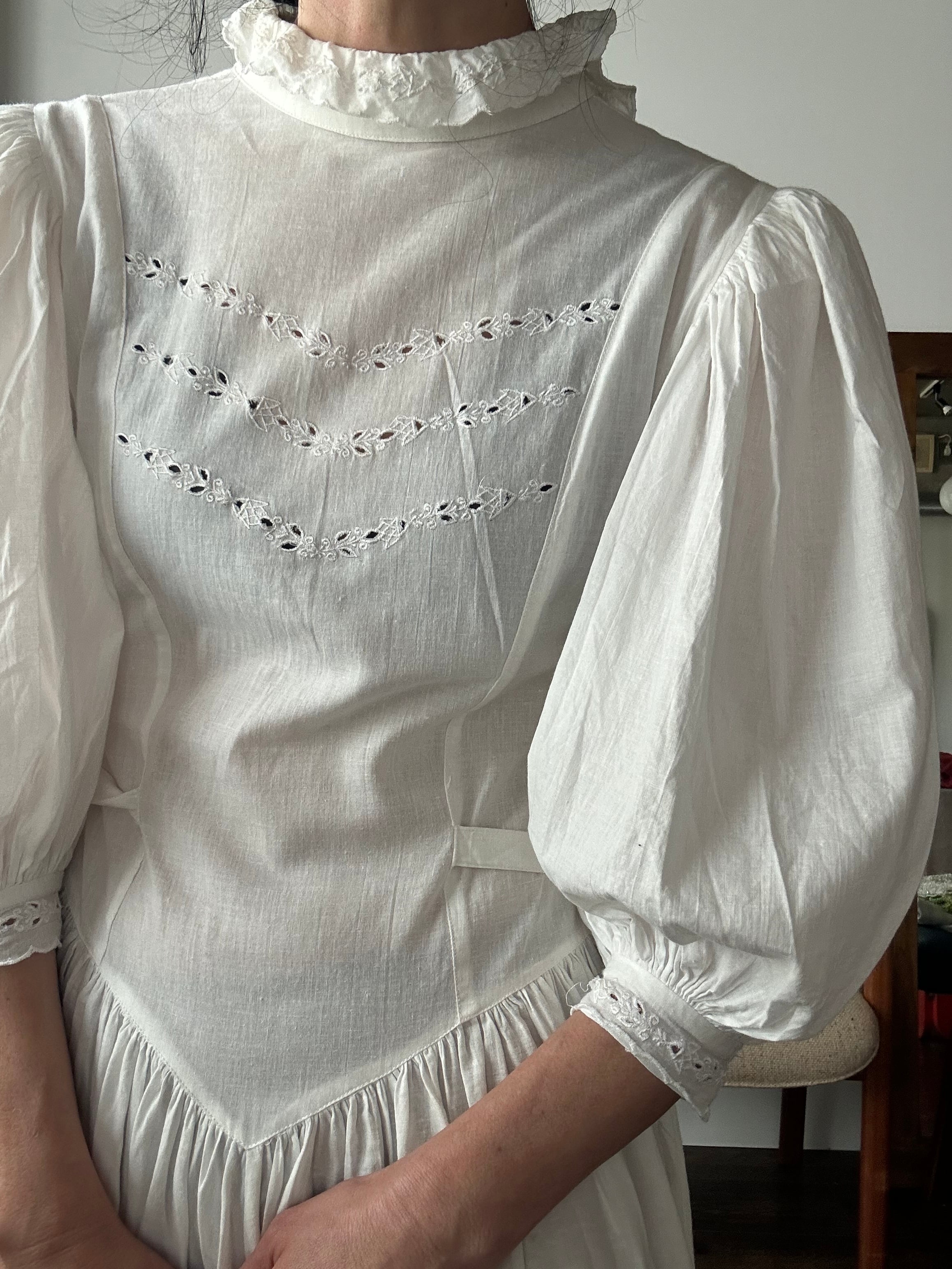 Antique cotton puff sleeve dress